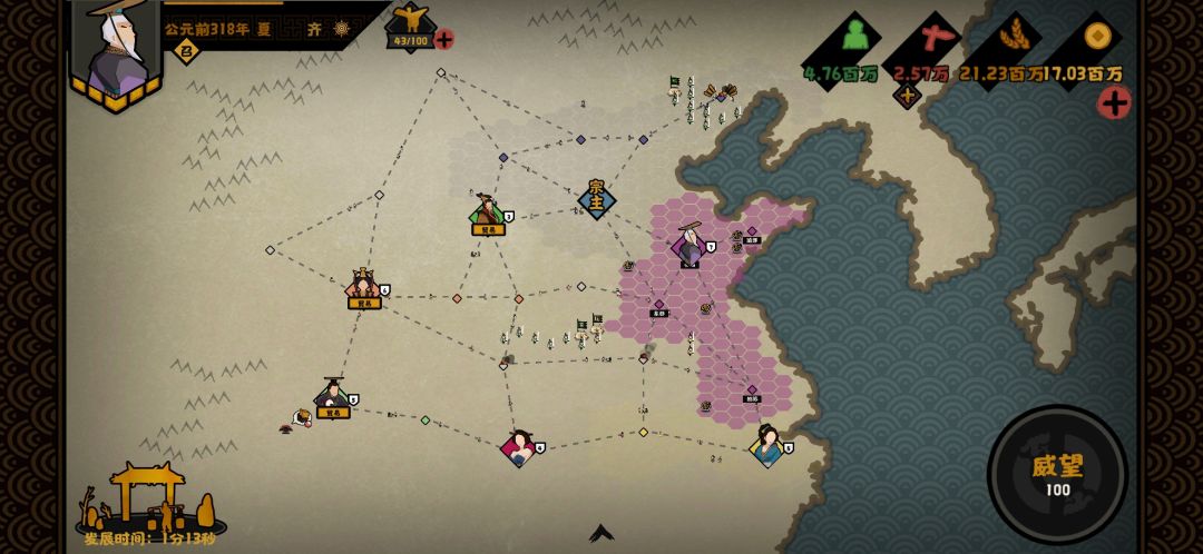 5一定要提升威望,游戏里肯定有个发展速度比你快的,谁威望先到100,谁开盟会,开盟会就可以纵横国家去揍他,