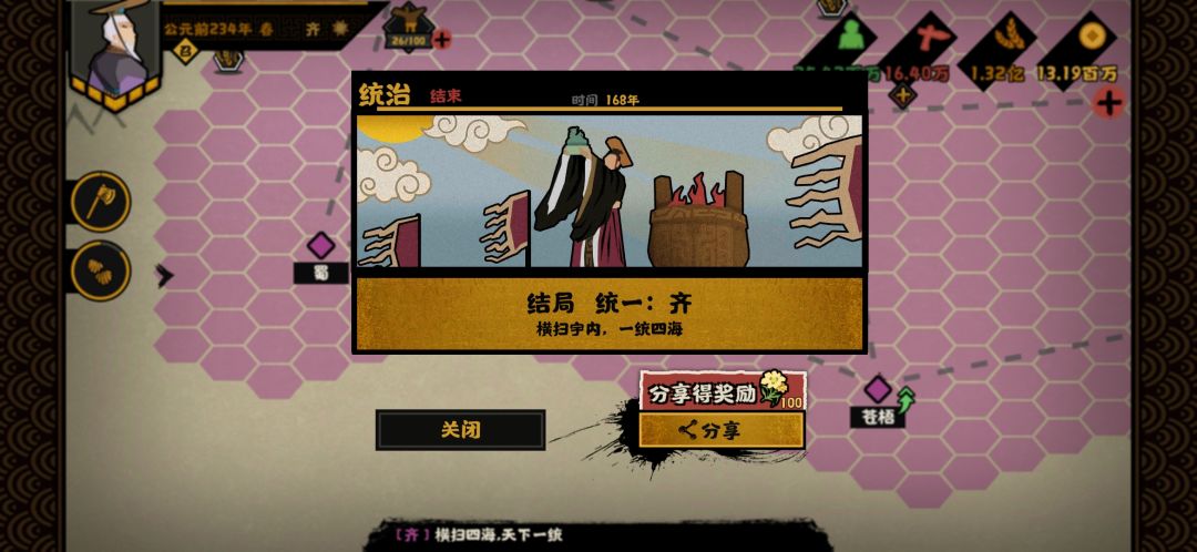一天时间开了把秦,感觉历史上秦灭六国不是没有道理,有商鞅,白起在,确实可以大肆屠杀,(历史上是王翦攻打)还是老样子,徐徐发展,步步图之,这方法就是慢,但是很稳,军民心都是90以上,腐化20以下,不会触发负面结局。