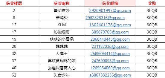 奖励已通过QQ邮箱发放,请各位小霸王查收。其中62楼获奖玩家邮箱不存在,发放失败,不予补发。---