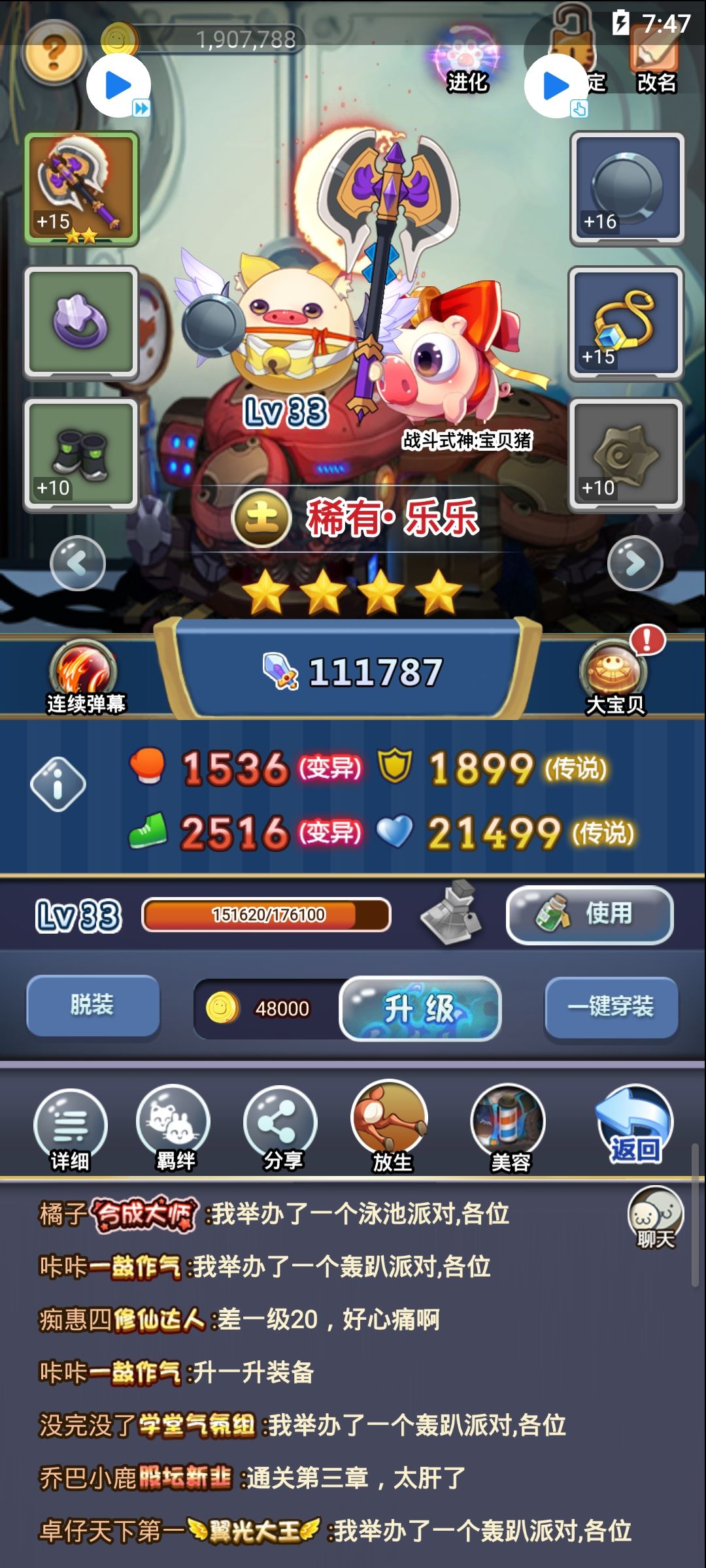 豆豆,和乐乐是羁绊宠物,推图宠物经验翻倍,可有可无,豆豆本身不强,只混个羁绊也可以。