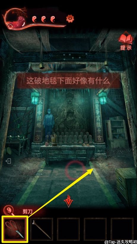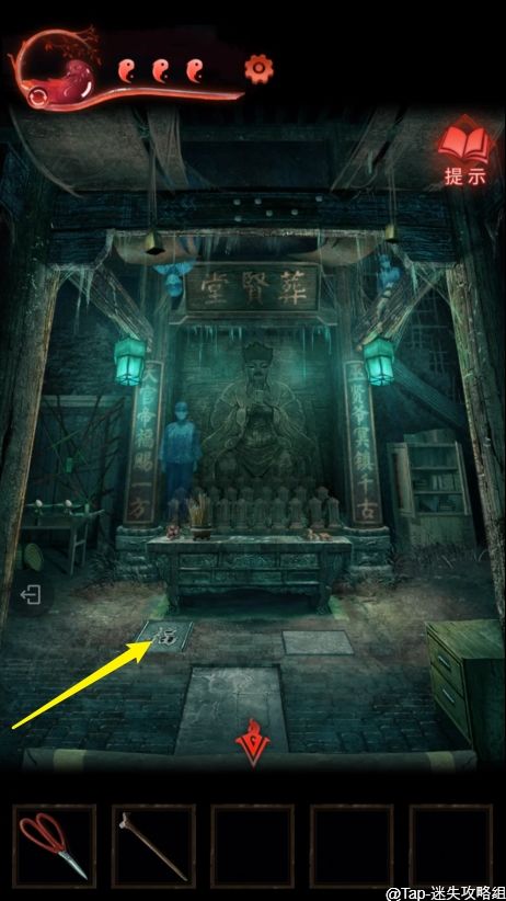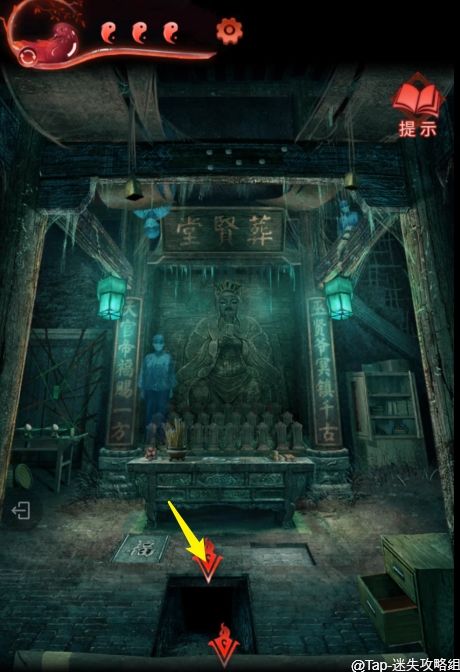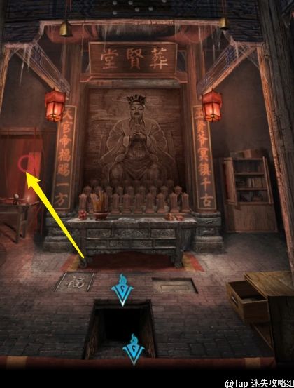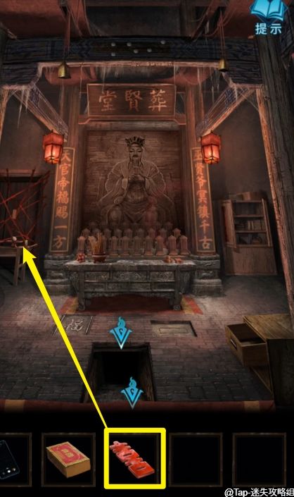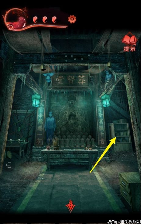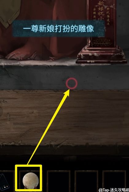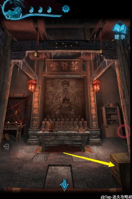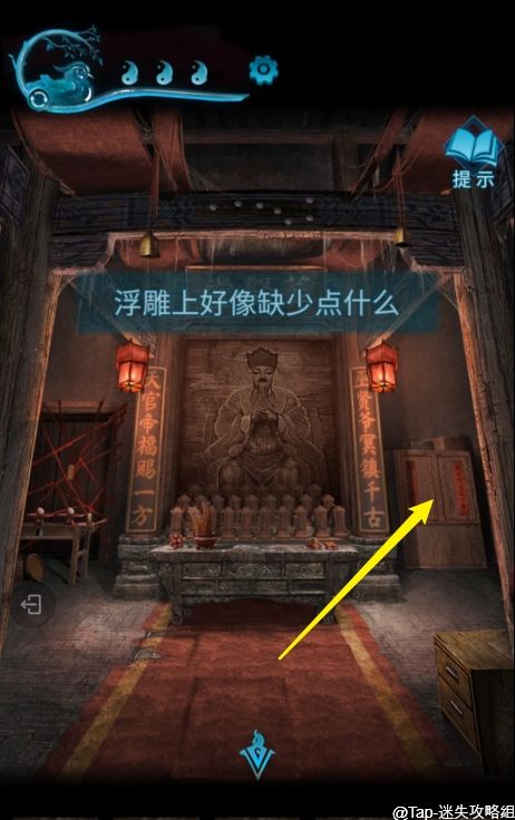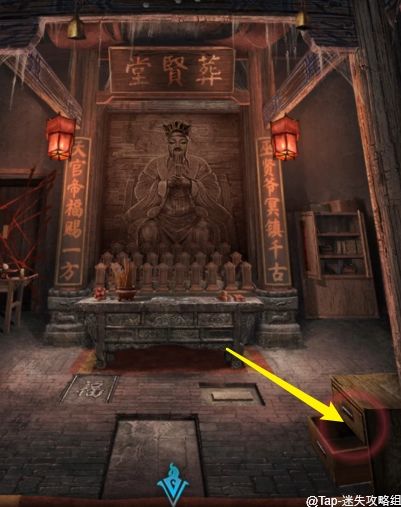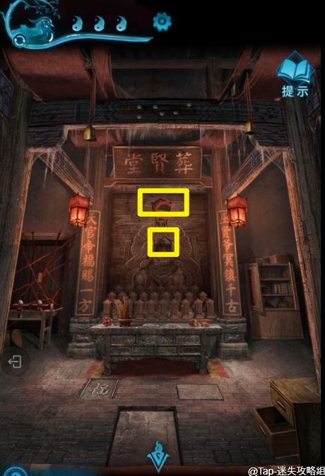 115.回到宗祠,点击雕像左边的祭坛,将【阳喜字】放入凹槽。115