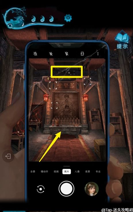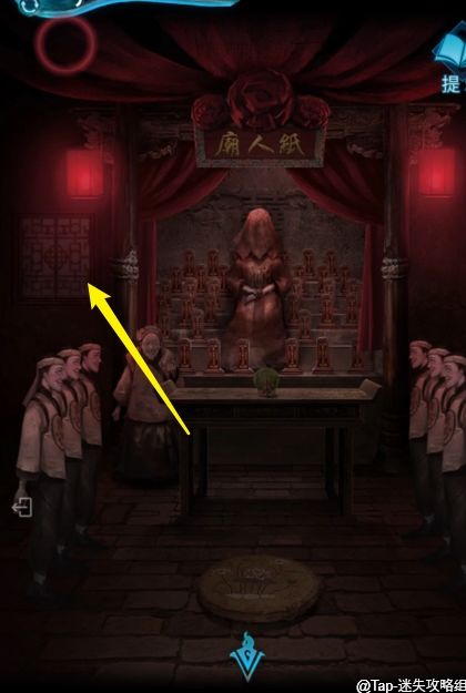 122.进入宗祠,将【铜镜】放在雕像左边的纸人庙案台上(调整铜镜使背面对着自己)。122 122.1