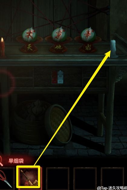 117.使用火柴点击左边红蜡烛,转换女主视角,使用【旱烟袋】点燃右边白蜡烛。118 118.1