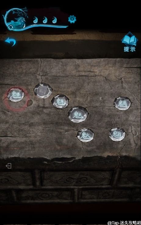 86.根据《名讳秘字》中的记载(如图86),在石像前石桌上的北斗星上输入字,从右至左输入鬼字旁加(离、旨、火、天、尊、空格、胜)。86 86.1