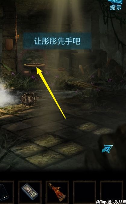 105.使用【拐杖】将【佛头】移动到机关上,压住机关。105