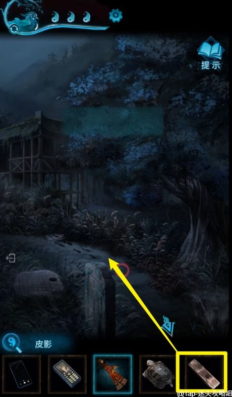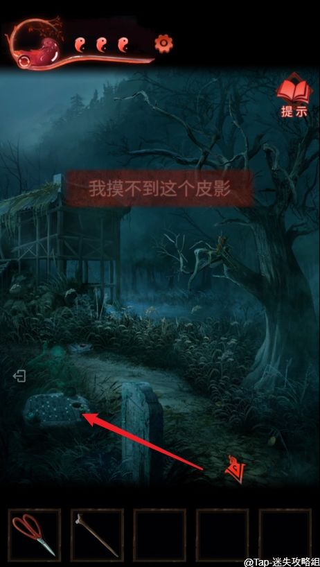 90.返回野外小道,使用【剪刀】取下树上的【皮影】。90