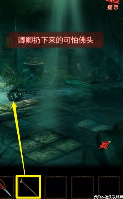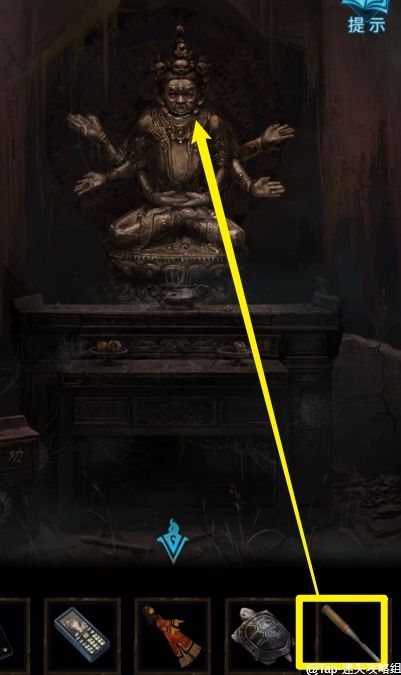 103.走出宗祠,来到野外的寺庙,对神像使用【凿子】,得到【佛头】。103 103.1