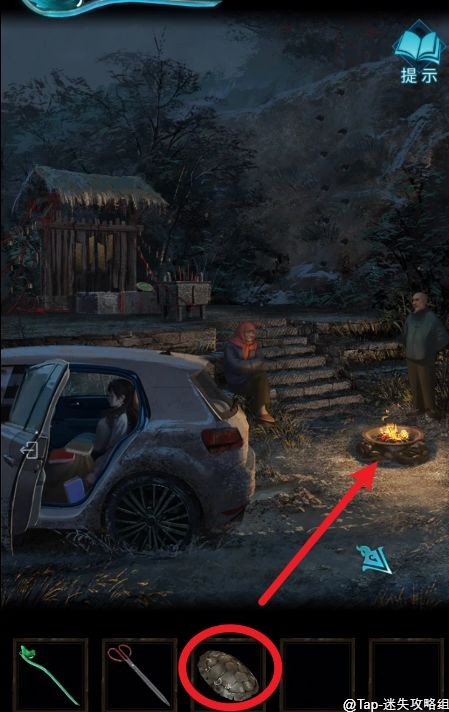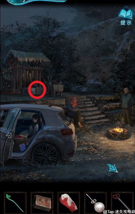 10.将门推开一条小缝隙,观察房间内香的高度返回车旁点击香炉将香点燃,香燃烧高度与屋内香高度一致时,香炉上出现文字,返回石狮子处,点击狮子脚下,从左向右点击第三个按钮2次,再点击第一个按钮1次,随后点击第五个按钮1次,然后点击第二个按钮1次,最后点第一个按钮即可拿到【钥匙】。10 10.1