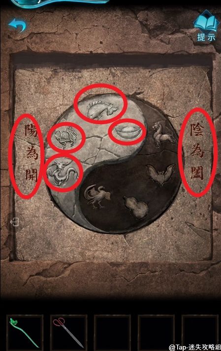 19.根据阴阳图将屋内龙、玄武、鱼和元宝的柜子依次重新打开,暗门自动开启获得【龟壳】。19 19.1