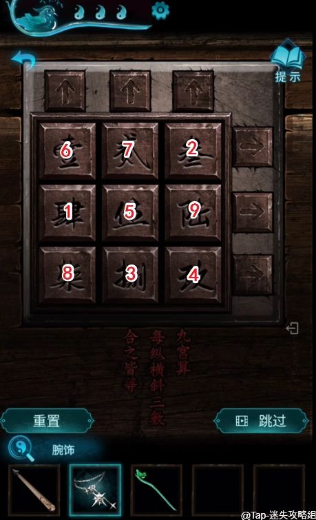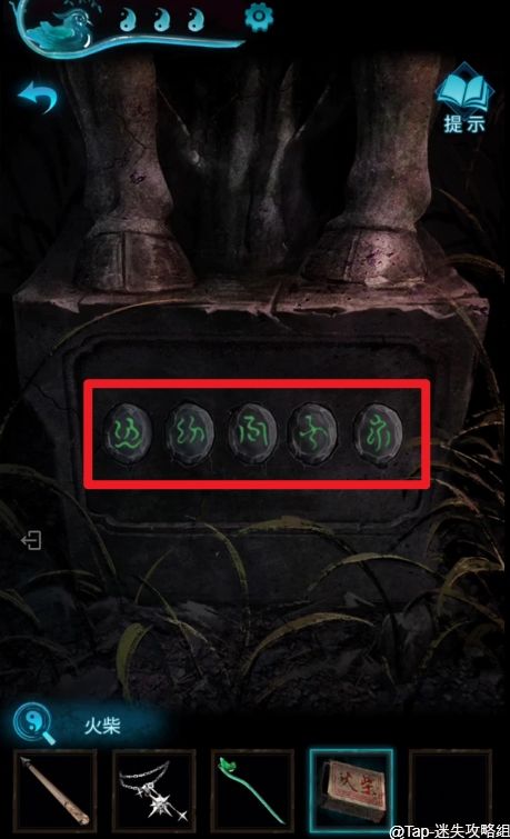 25.将石符从右向左摆放在机关中,夏至放在下方缺口处,打开机关得到【招魂令】,随后下山返回祭坛,将【招魂令】放置在祭坛,游戏结束。25