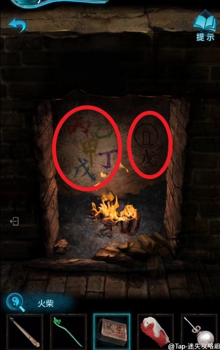 12.点击下方的灶台,将右边的【火钳】收集起来,把木像扔进去用火柴点燃,火光照亮灶台内部,将暗号记录下来。12 12.1