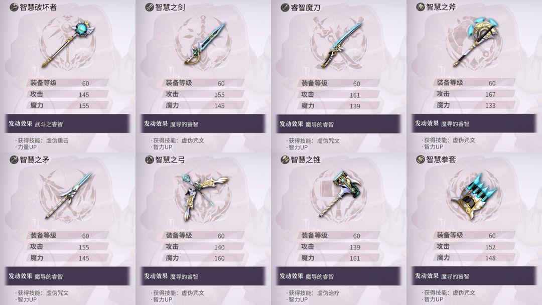 杖:最大MP+6/级(最高提升60);后排时MP恢复量+6%/级(最高+60%)