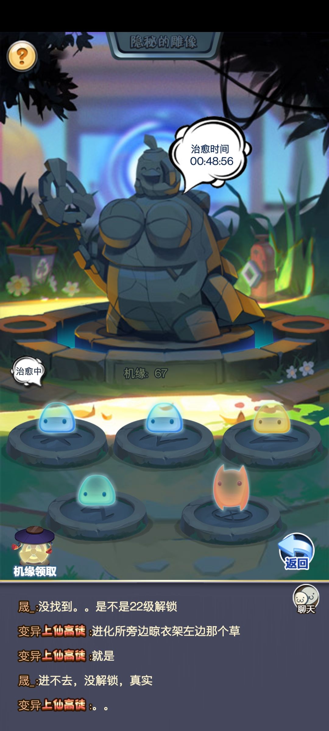 前提:放生出灵魂解锁石像功能(等级不明,有确切数值请告诉我。)