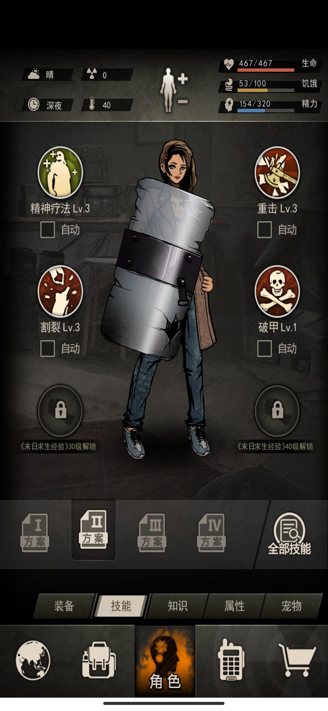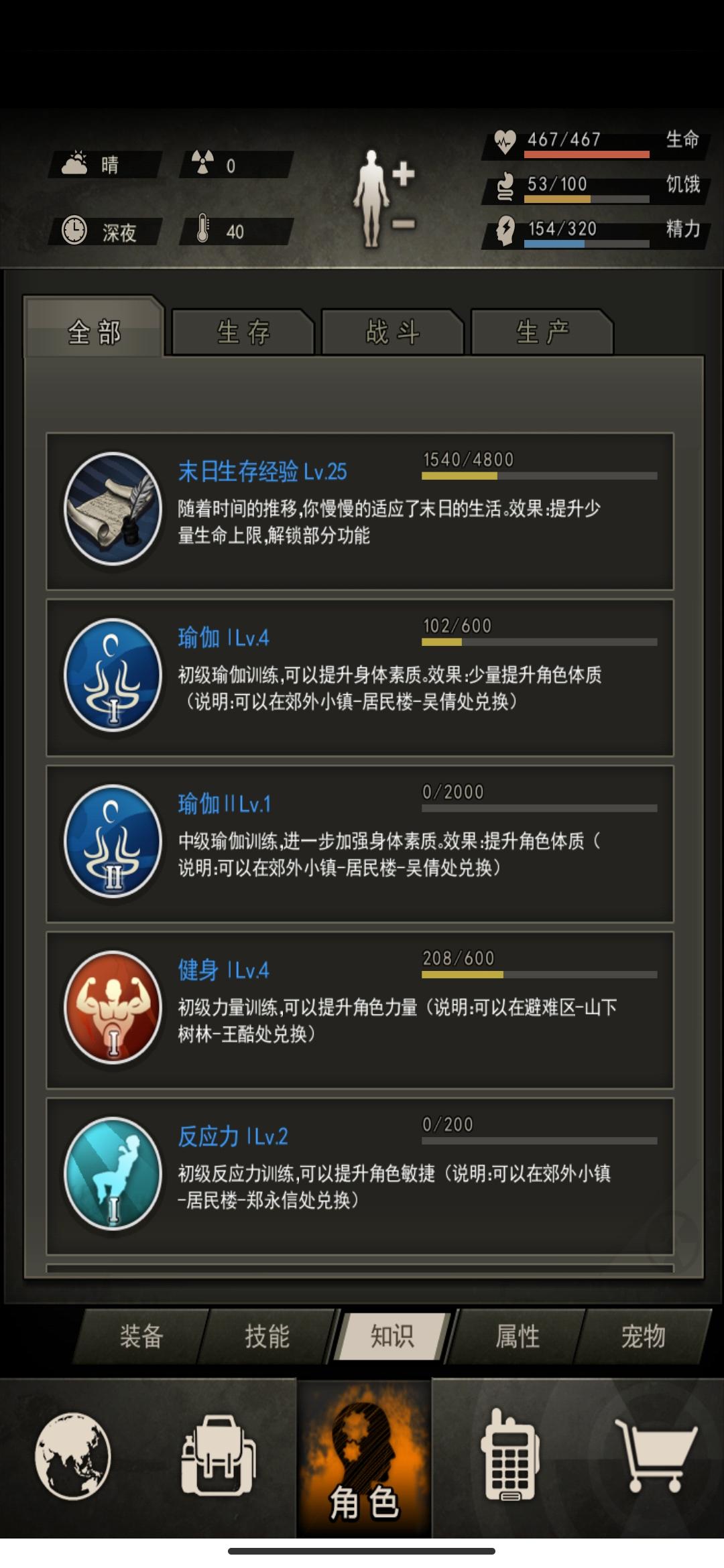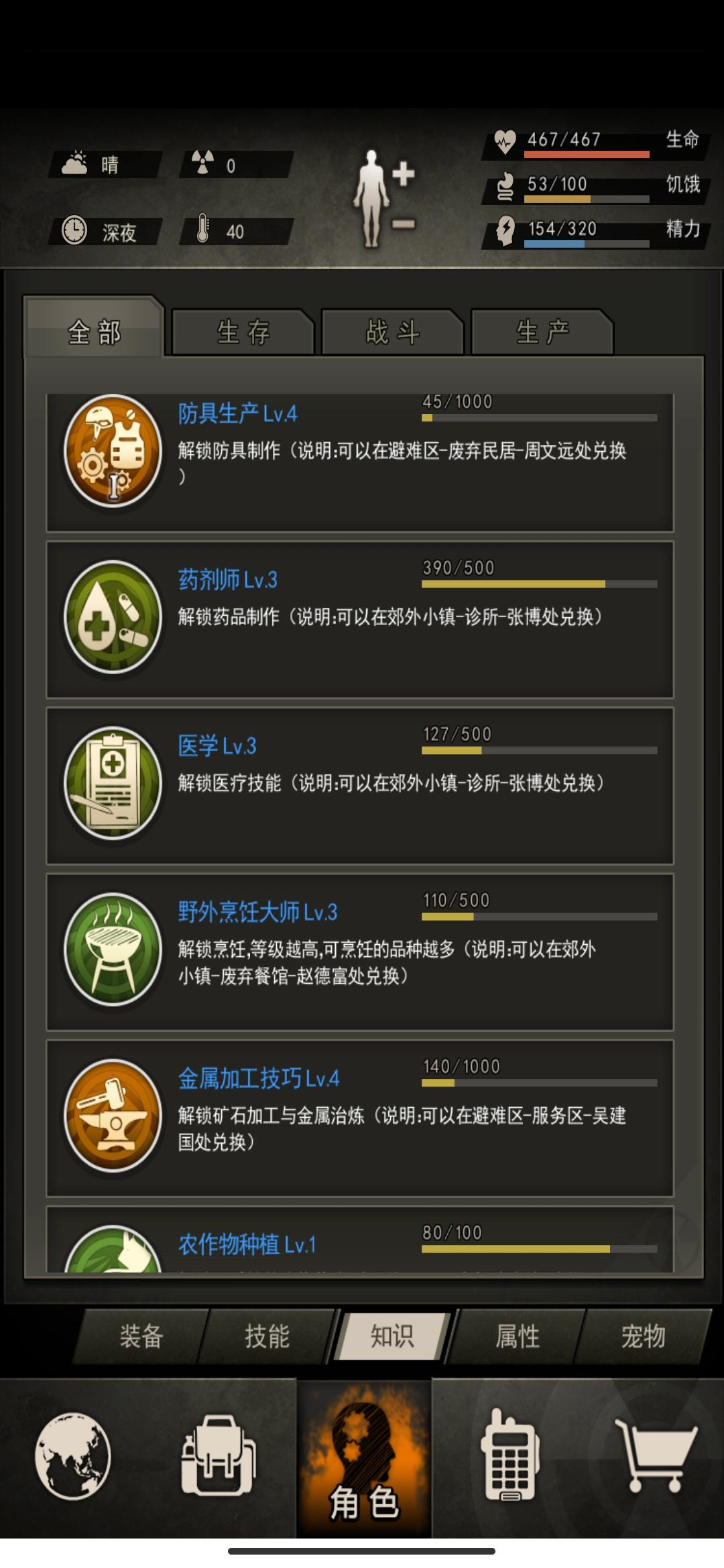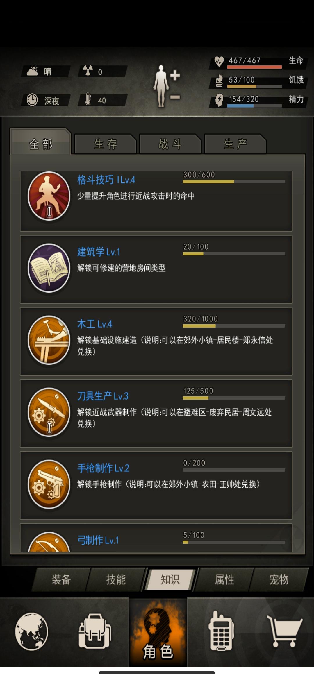 3.现在的情况是吃肉不自由,得去专门刷肉,刷完就得去修武器,然后再刷修武器的材料,想提升自己不知道该做什么了,打蛇连基本的开门力量都不够,下一个可制作的更好的武器就是户外斧了,要刀具4,还得好几天