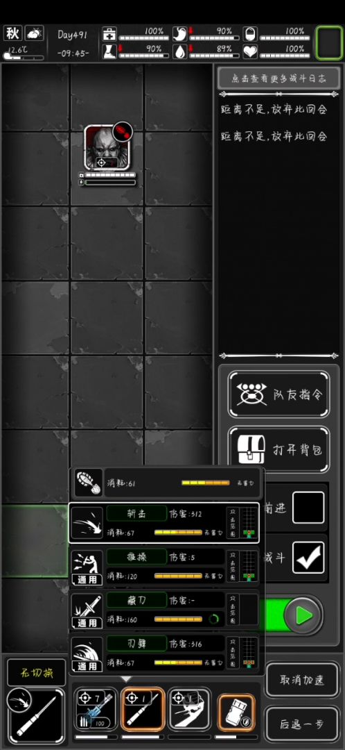 (有点绕,举个例子:军刺攻击需要行动值72。敌我贴脸,怪还需要110行动值才能攻击。我还差10点行动值可以满行动条进行攻击,攻击消耗72行动值,也就是说攻击完还需要72行动值才能进行下一个动作后退。此时110>10+72,可以攻击。)
