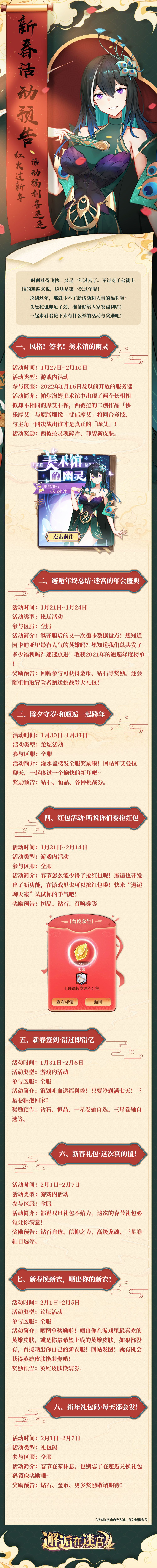 新春礼包活动时间为:1月31日5时~2月7日5时