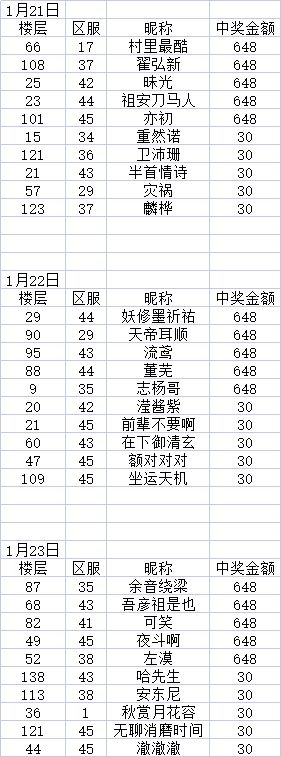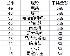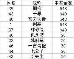 中奖名单: