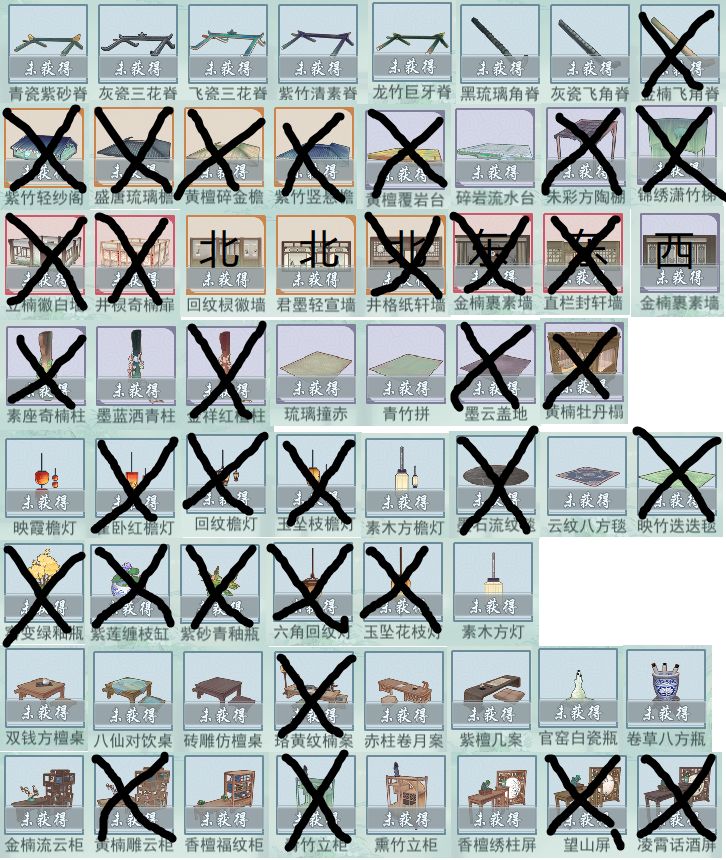 墨蓝洒青柱、碎岩流水台、赤柱卷月案、映霞檐灯 可多换一