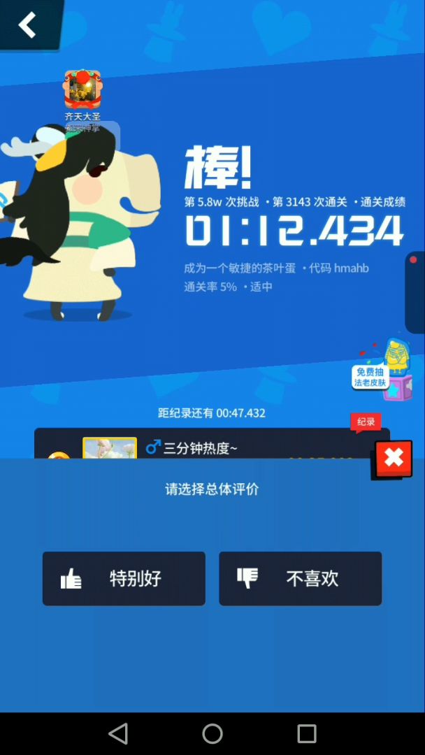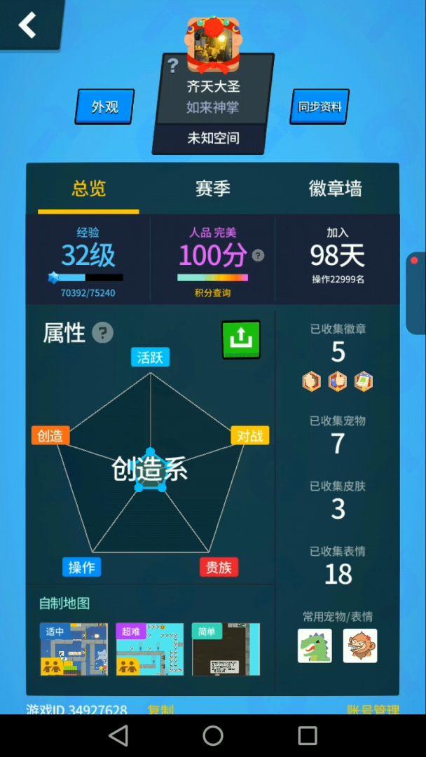 自制地图右上方有个周榜,里面有本周的创造星和操作星排名。榜单会在每周一0点清零。随意在自制地图中点击一个地图,就能进入地图界面。详情如下: