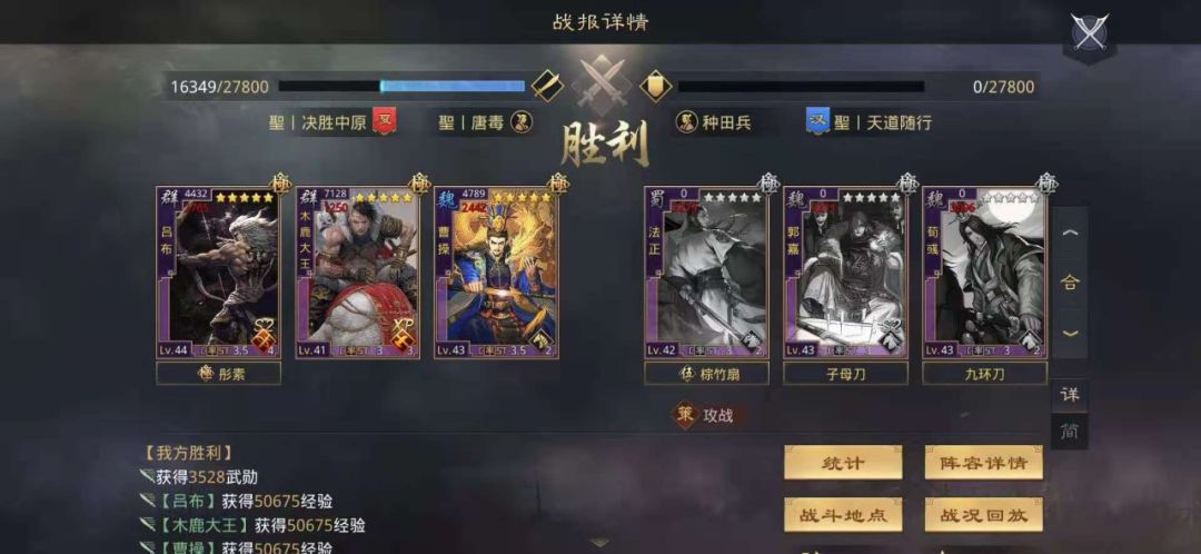 首先,宝物要给曹操带匕首,确保队伍的出手顺序为木鹿>曹操>吕布,也可以减少孙权、周泰、磐阵善守、单骑救主等武将战法的防御效果。