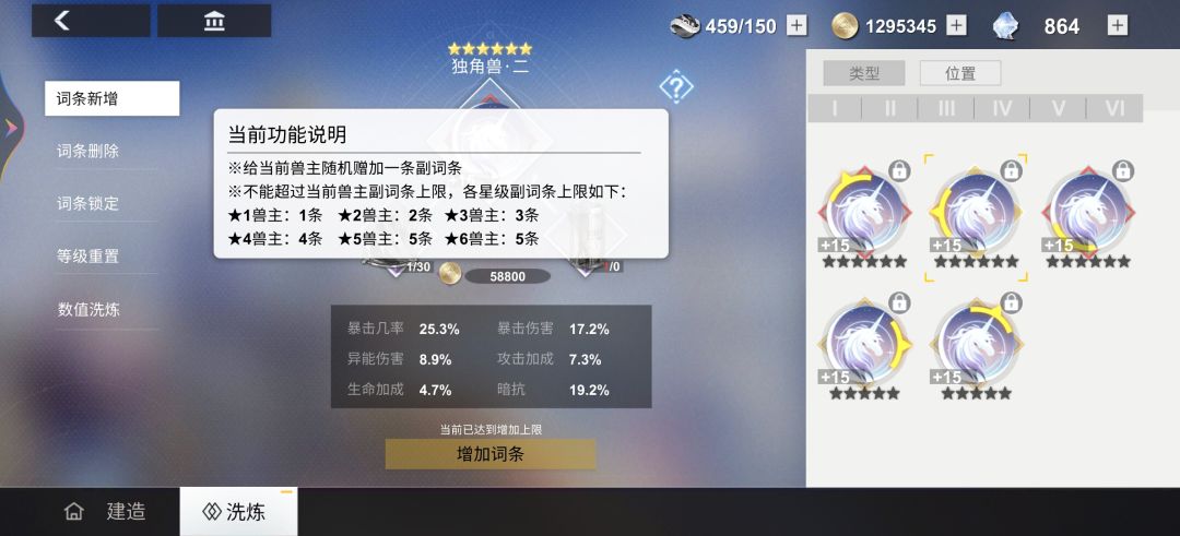 这个配合前两个功能,只要有足够多的资源和光辉,我们理论上便可以把任意一个六星兽主刷出双爆属性。