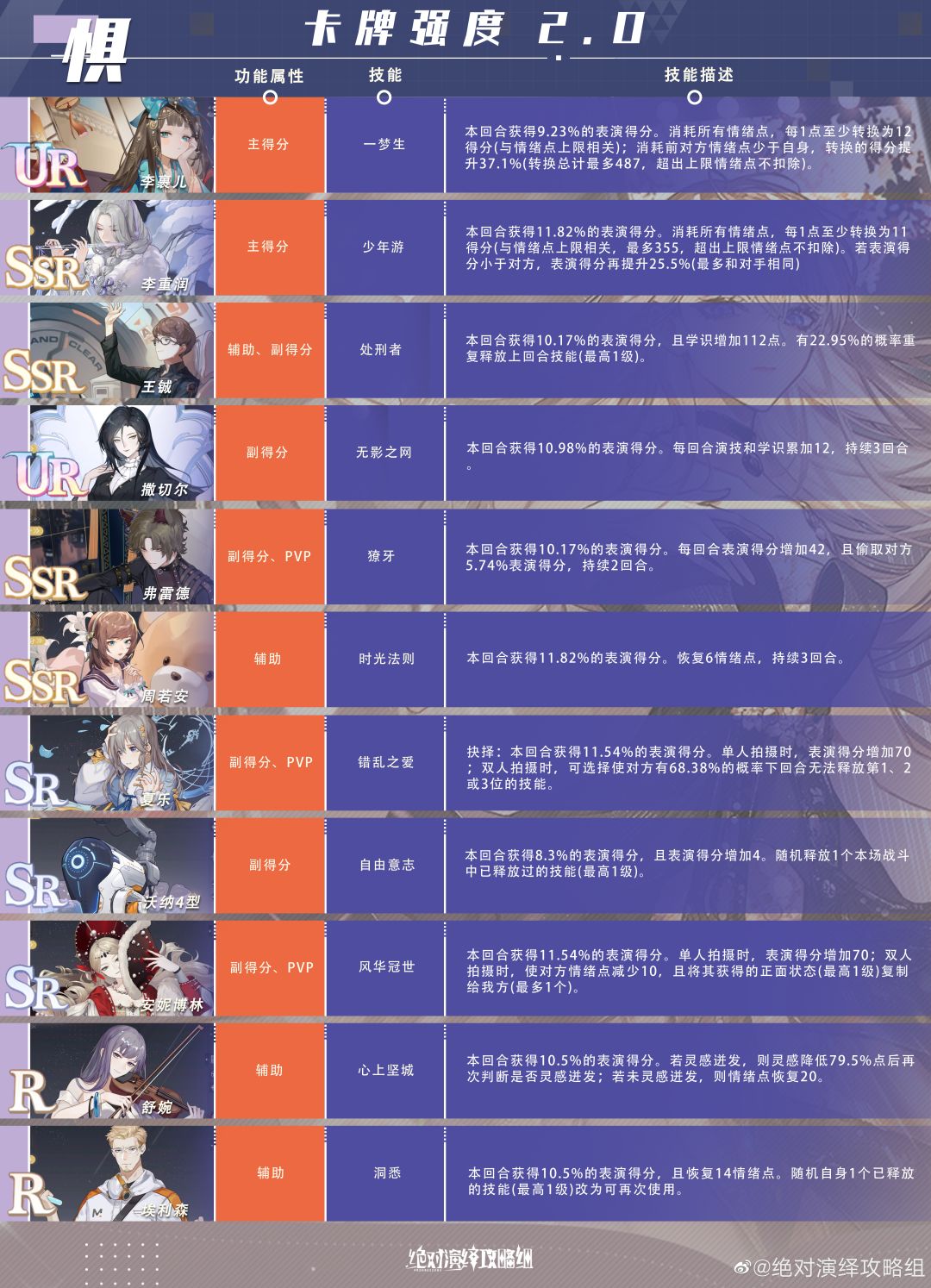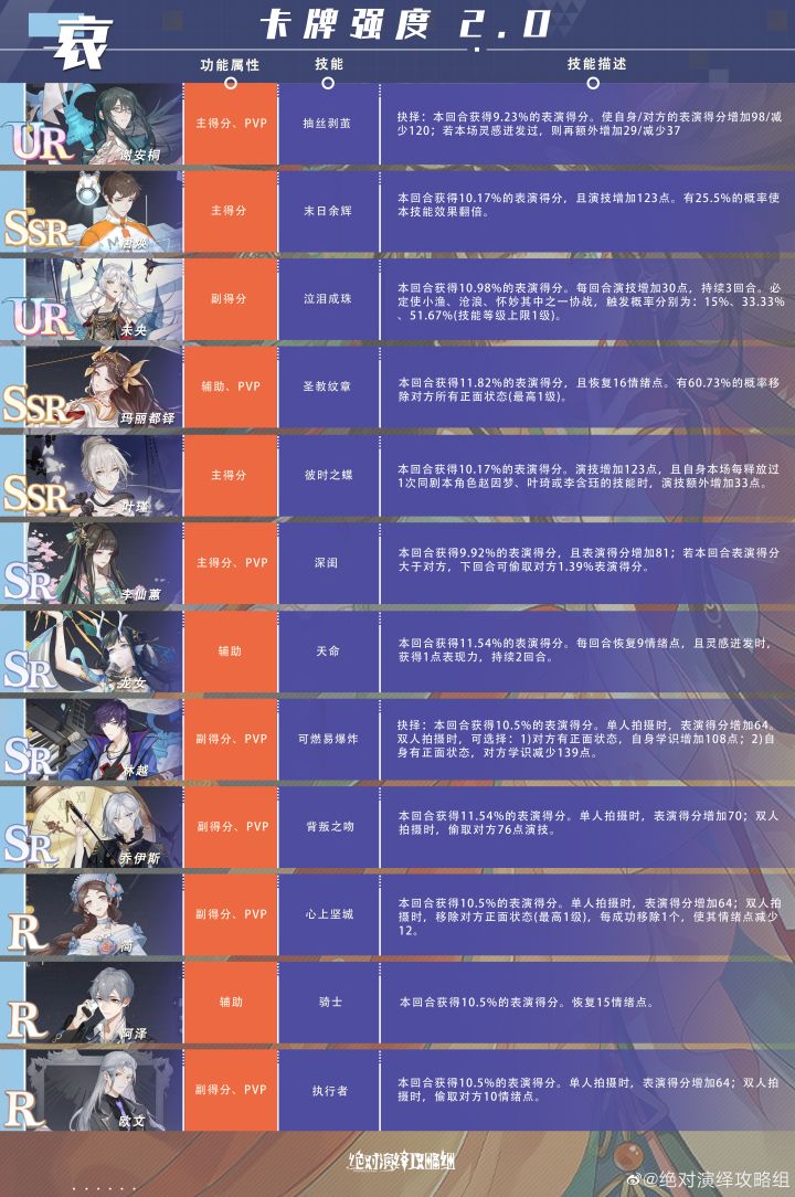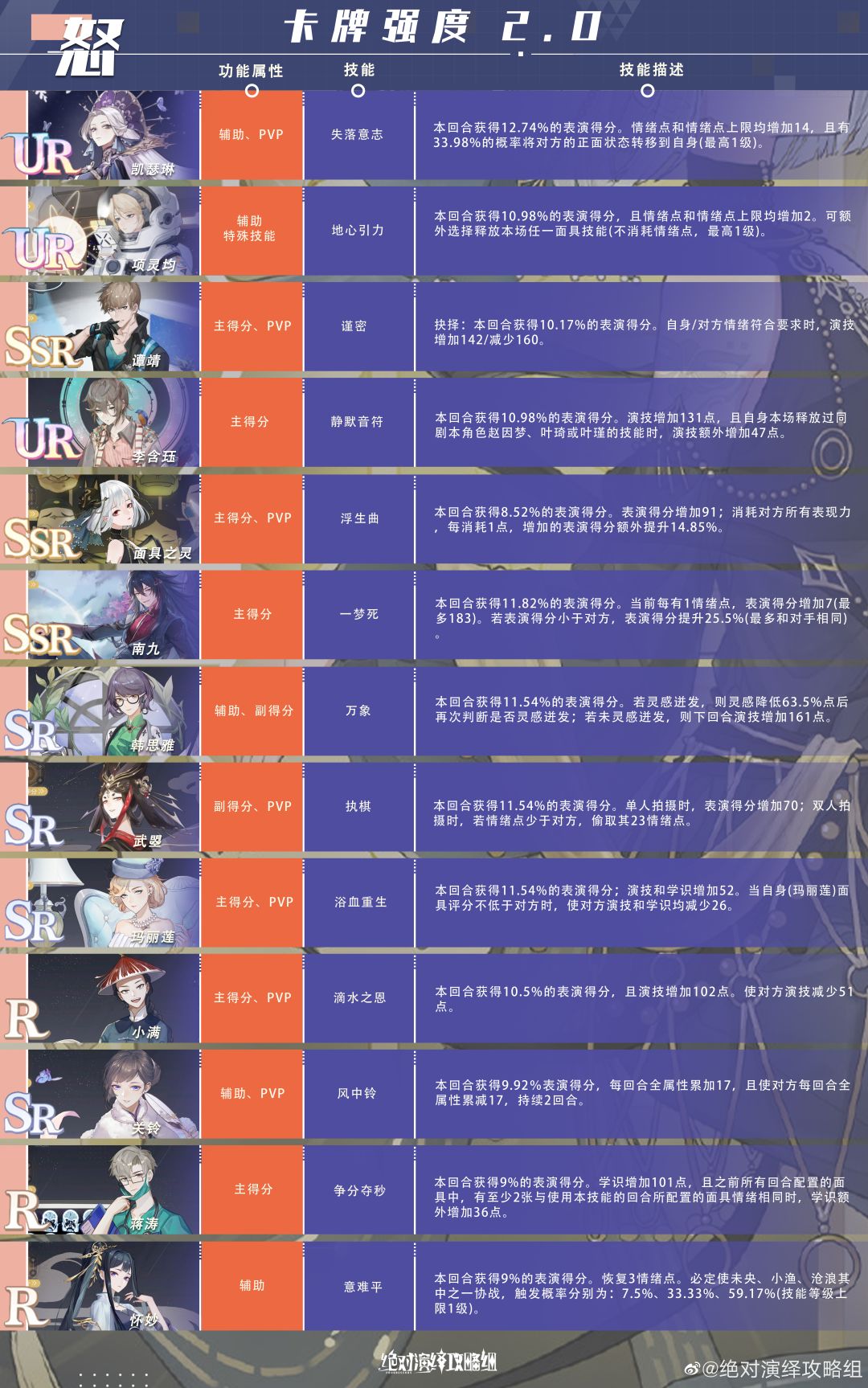 ▫️多为与情绪点相关的技能,为主得分面具提供增益BUFF,自身得分能力很弱,需在主C成型后再考虑是否进行培养;