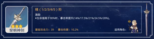 满精满级的双爆28%/46.9%,但凡是个4★武器,这把武器都要超神!极其适用于元素战技流的阿贝多,在阿贝多的4★武器辰砂之纺锤出来前,就是阿贝多的3★专武。目前辰砂之纺锤活动已经结束,武器也绝版了,没有拿到的小伙伴,还得使用这把3★武器。
