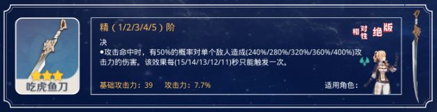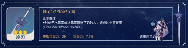宝箱开完了,如果融掉了就没了!满级暴击率23.4%,适合前期缺c的时候,走主c流的香菱和罗莎莉亚,罗莎莉亚做冰暴击拐也可以用这把武器。(后期香菱建议充能做副c,真爱党主c流除外。)