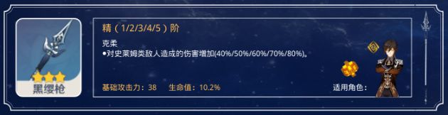 目前唯一一把副词为生命值的枪!满级生命值46.9%,是血牛钟离的毕业枪,对史莱姆简直就是6★武器,俗称“史莱姆枪”。