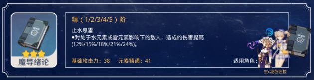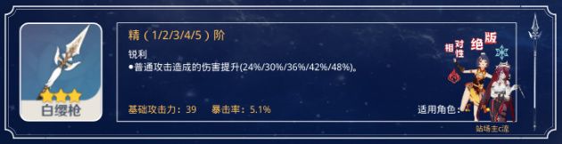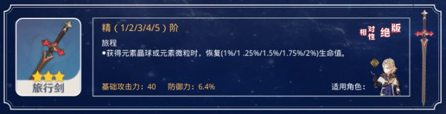 适合前期凯亚及行秋开荒期使用,也适合前期的七七,七七的乃吃攻击力,更别说还有大哥拿七七当战斗奶妈使用的。