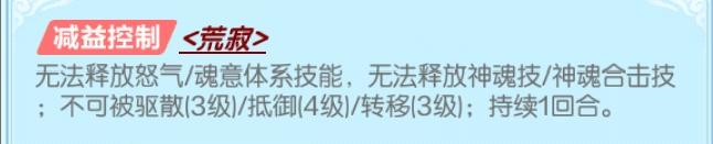 受击时75%概率触发,使攻击者罚站一回合。且使周围十字范围的神仙绝对伤害减免减少40%,真实伤害减免减少40%。同时减少怒气神意和神魂。