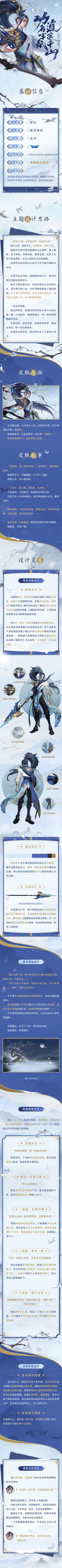 皮肤选择了兼具武侠元素与古代官员常服元素的简约常服设计,辅以偏现代的干净利落剪裁作整体线条勾勒。袖口、肩头和前后襟的梅花花纹,用以传递人物清高孤傲的自况。少许金属装饰则用于补充卸下戎装的常服形象的遒劲感,包括缠绕袖口和发饰的金属梅花枝,和胸口寓意着仁义礼智信五常俱全的金属大雁。