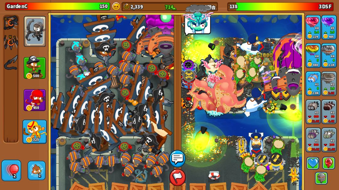 38回合被对面先手了。两边都打不过的样子,我阵容除船外只有三级,尽力了。前期没有发育好,最后发船前只有1500,但对面有中路德鲁伊。