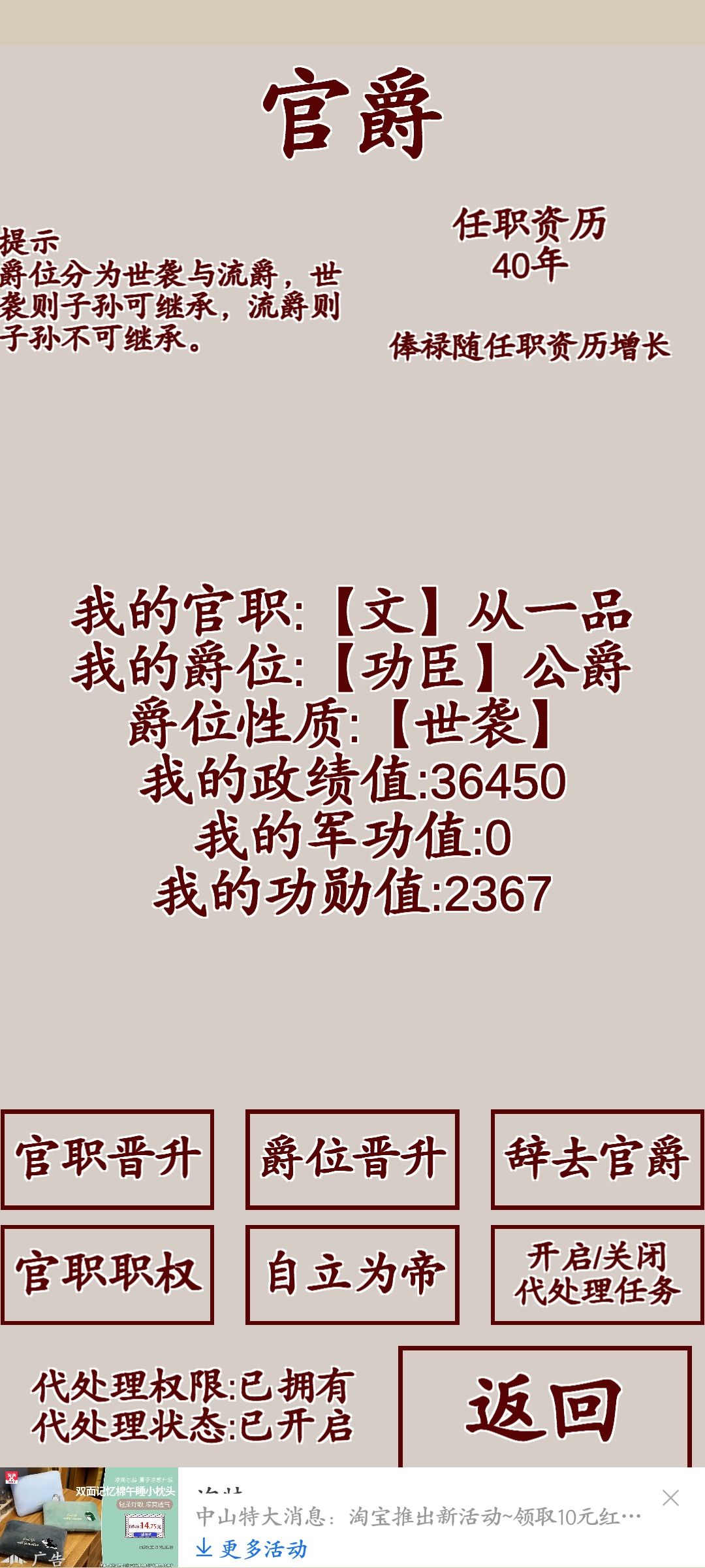 从一代到现在二代花了七个小时,正一品太难搞了,继承能不能不要少政绩值和功勋值啊,都不知道要多少代才能自立为帝,心累啊