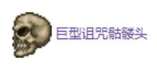 巨型诅咒骷髅头的行动方式与诅咒骷髅头相似,并会发射穿墙射弹,被巨型诅咒骷髅头及其射弹击中会有33%几率获得诅咒减益,诅咒减益会使玩家无法使用任何物品。击败巨型诅咒骷髅头会有小概率掉落饰品邪眼和近战武器暗影骑枪,邪眼能免疫诅咒减益,并能用制作十字章护身符的子材料反诅咒咒语。