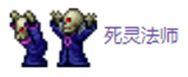 死灵法师会频繁传送并发射紫色激光束,激光束速度极快并且会在墙面上反弹,激光束击中人物会造成缓慢减益。击败死灵法师后有小概率掉落魔法武器暗影束法杖。