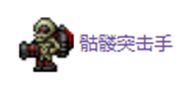 骷髅突击手会发射撞击到物块后爆炸的火箭,它的射程很大,所以小心从屏幕外飞来的火箭。击败骷髅突击手后有小概率掉落远程武器火箭发射器。