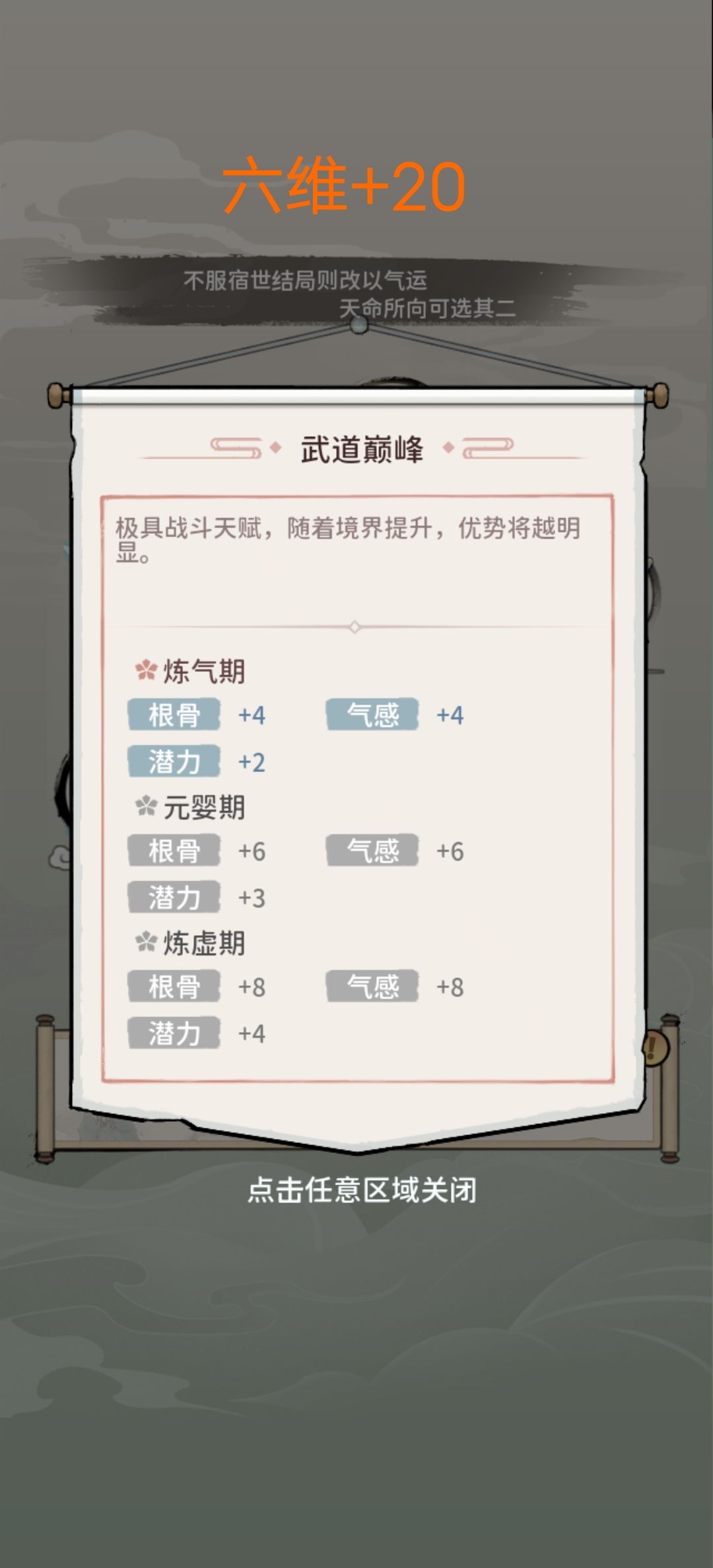 六维【潜】(决定最高境界),根,气,【悟】(学习/制作功法)