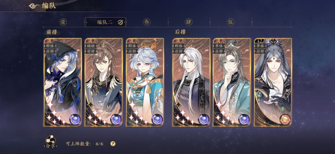 未央其实不是很推荐,但是有些同学全抽的未央,高破那就用吧。注意,如果上阵了了和未央,这两个人一定要站在同一列,这个是这个组合的核心。了了作为当前版本除安如外最强前排点杀,可以对对方的对位前排造成大量伤害,配合未央怒气大招机制,很容易就让对方3号位阵亡。而对方3号位,一般都不会放月怜,那如果真是月怜,那就认命吧,大不了我了了和未央放到2号位和5号位去。