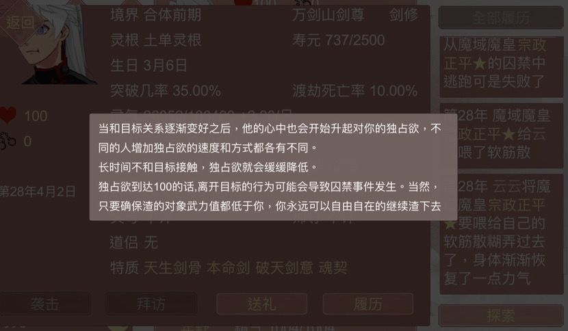 当时我从他囚禁里逃出来后他的占有欲就卡住了,在八十多不升不降的。我连续拒绝了他两次道侣请求后就迅速增加,我怀疑有阴谋,他是不是又想占有欲迅速升高来搞我∑(゚Д゚)