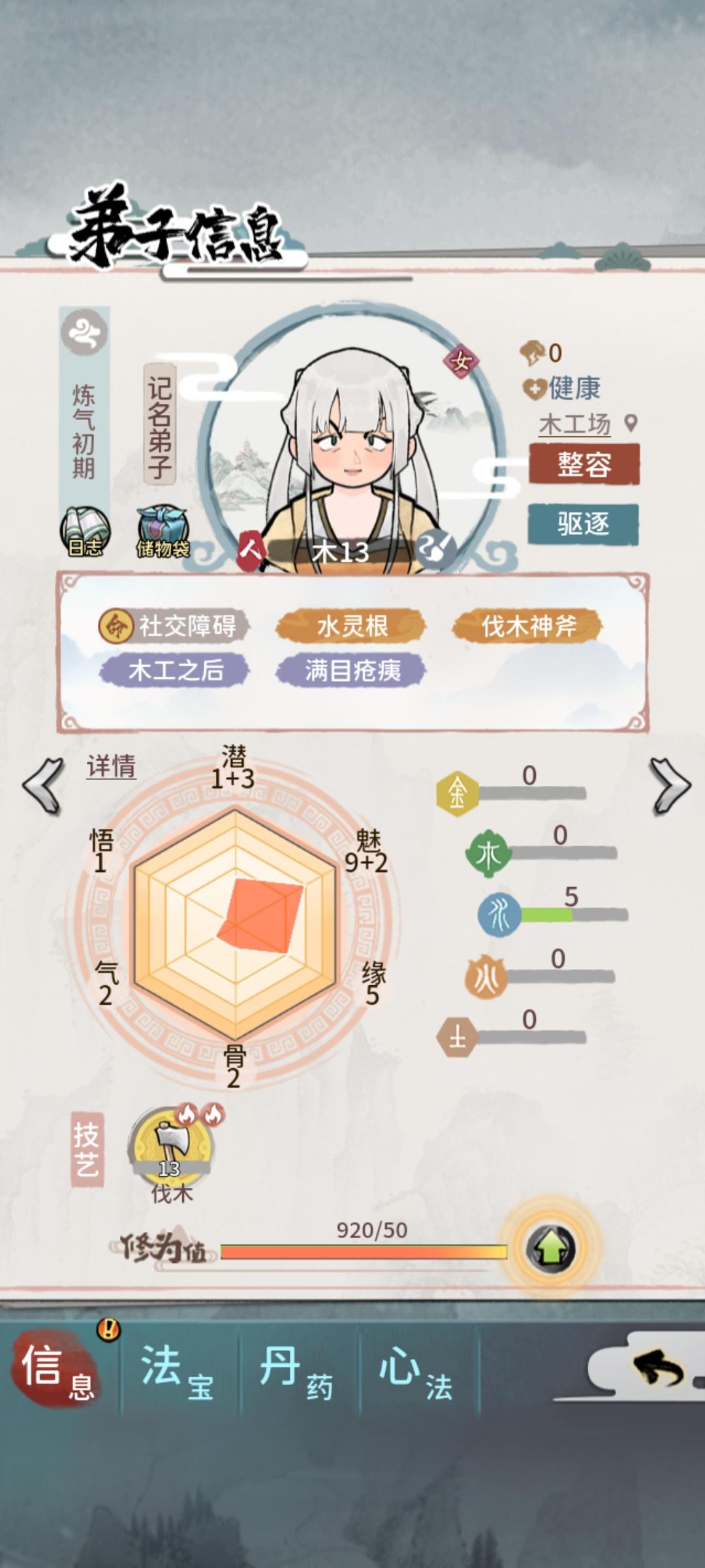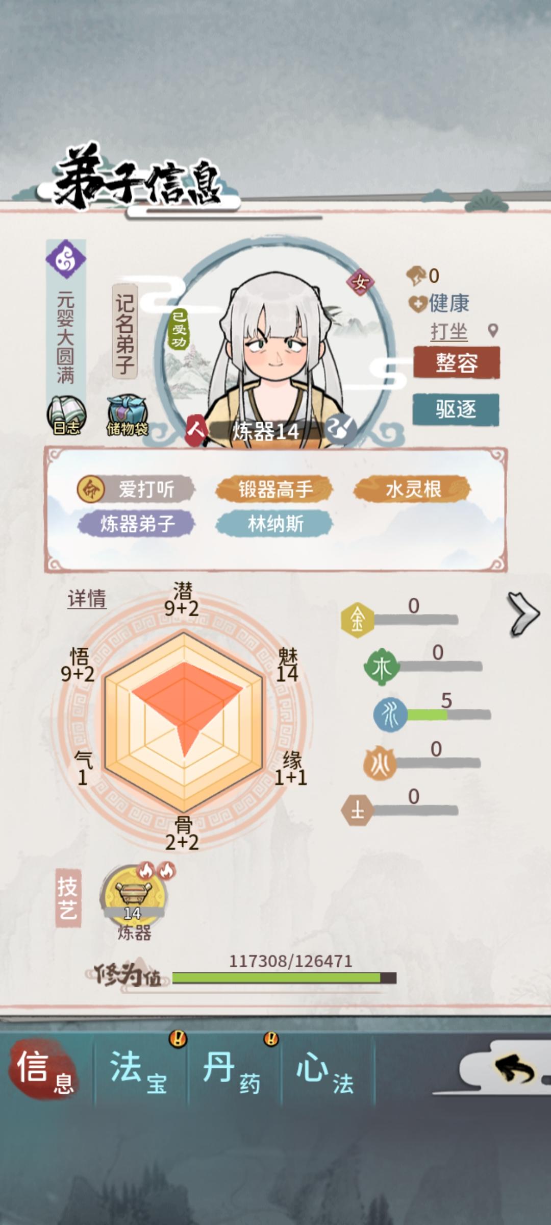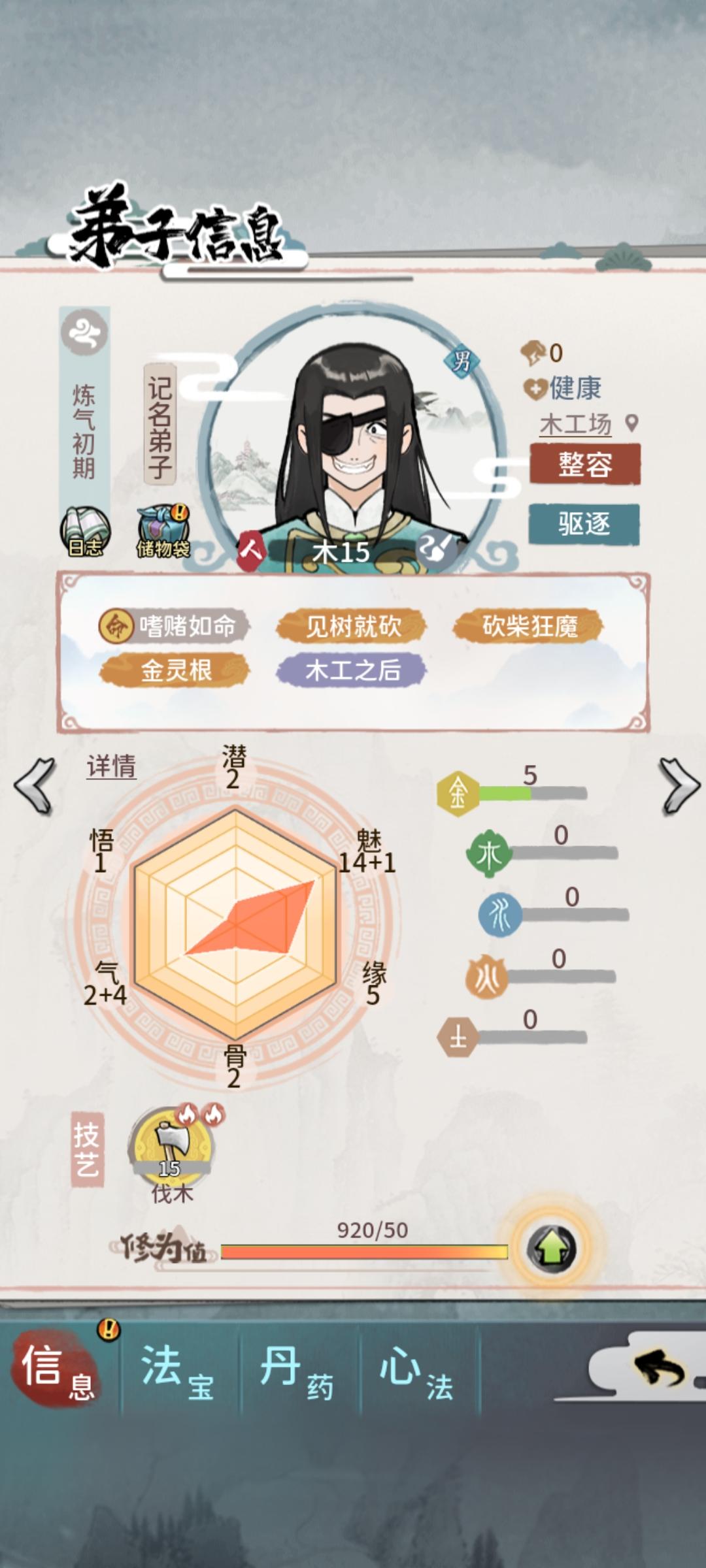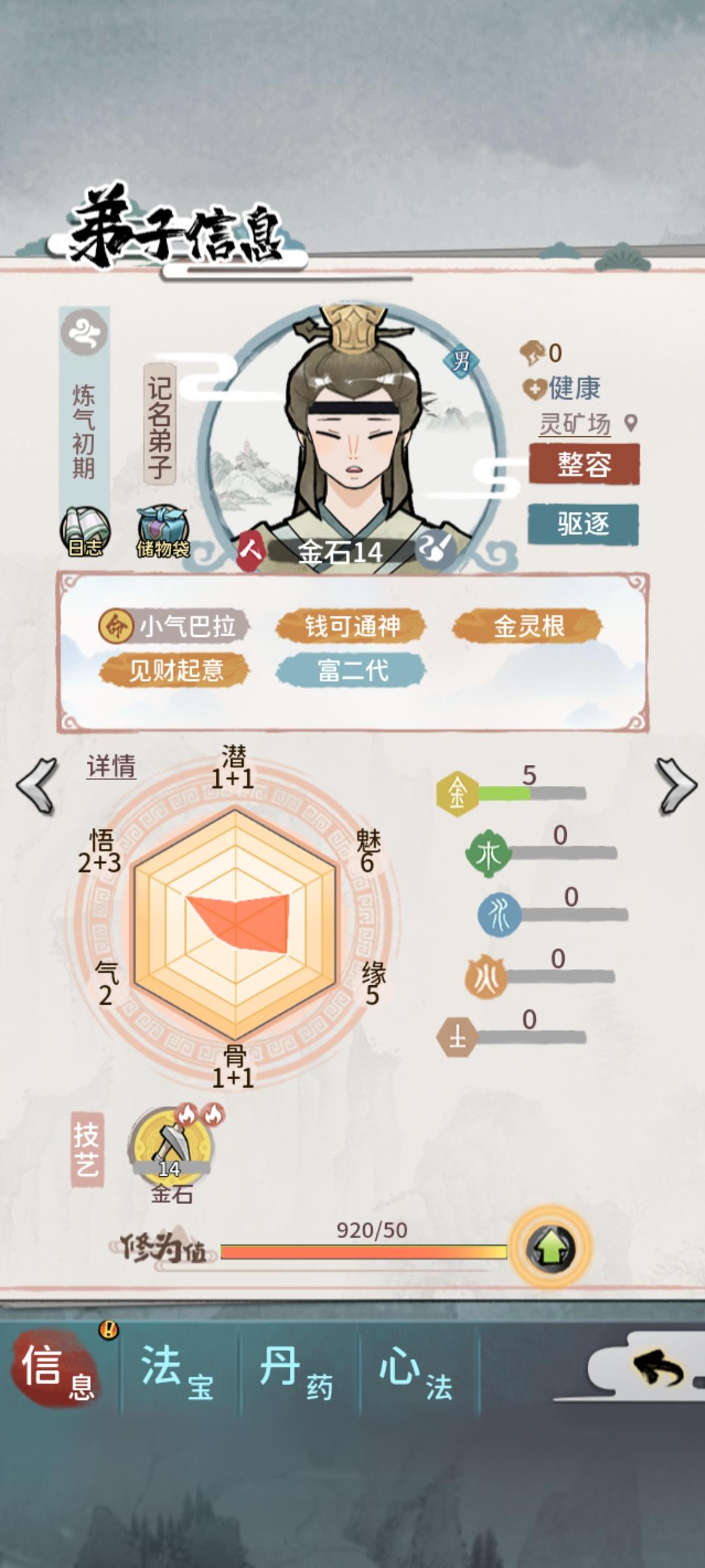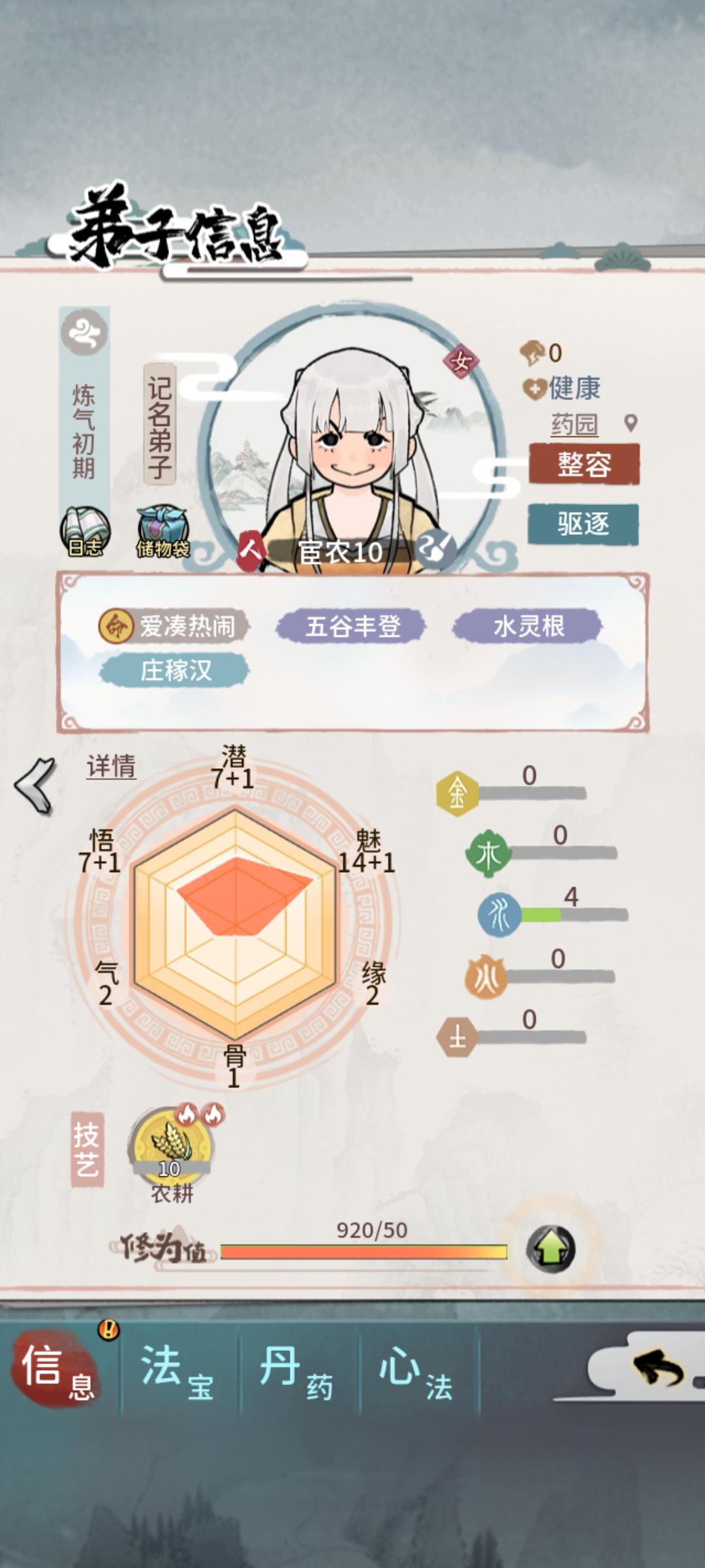 肝了三天好像捅了技艺窝了,一个六边形都没来,硬抗到化神,掌门和小师妹就不拿出来了。