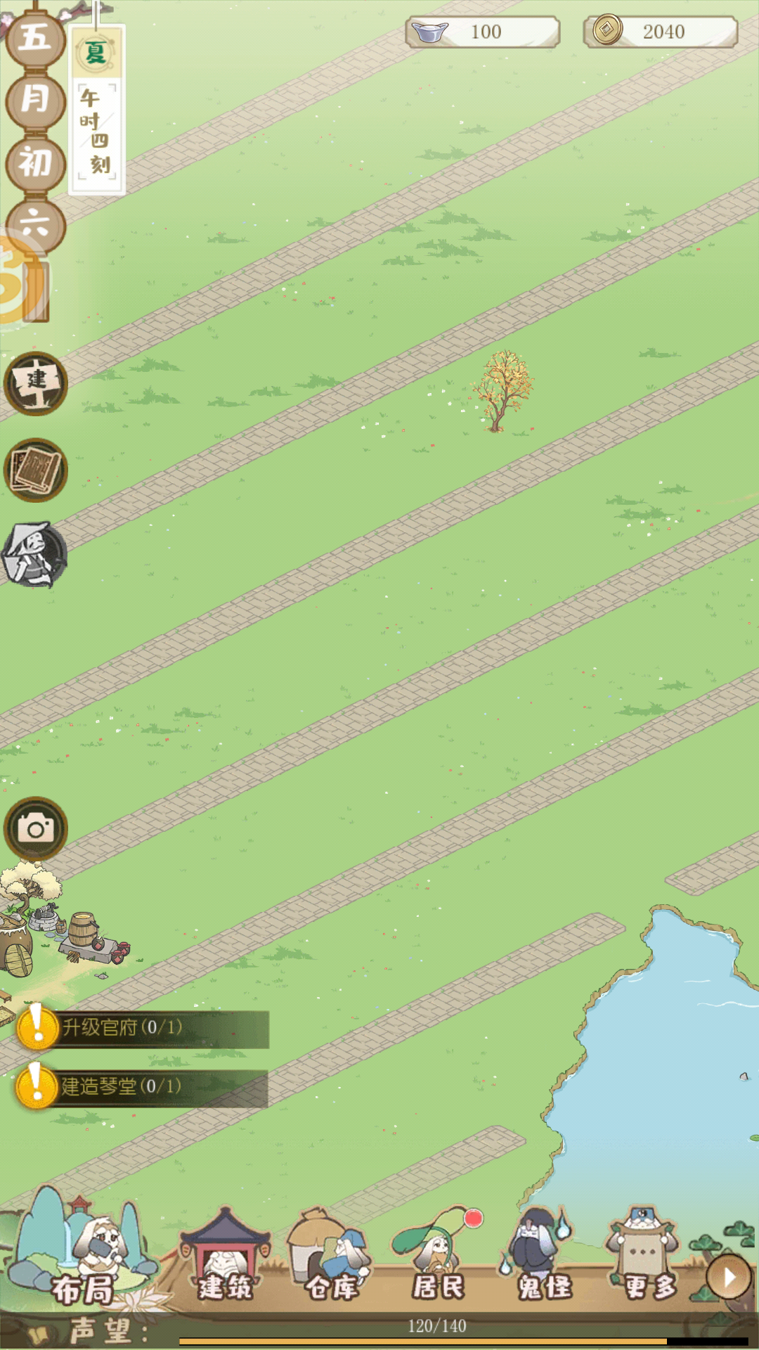 我州府才2级,环境不够,种子都买光了,木材收了好久也不够,其他任务也一样,产出太少了。收收税、点点点,还剩捉鬼能玩。(好希望生产物资也能一键收呀,转个圈收菜挺麻烦的)