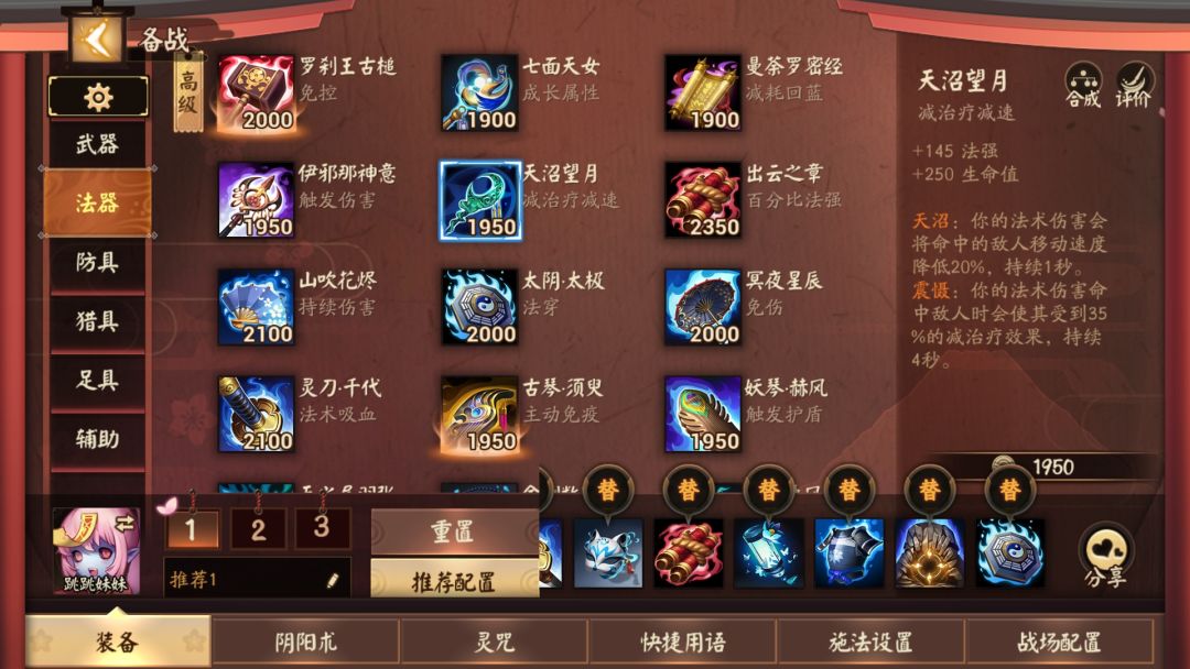 技能介绍完毕,接下来就是出装和阴阳术了。