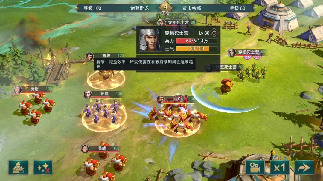 而像曹彰这样本身技能中并没有带那种伤害逐渐增加的多段技能武将来说,如果命中目标是带有郭嘉【看破】效果的部队,那么其实也就变向获得了越攻击伤害越高的效果。