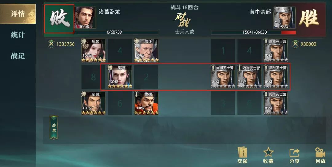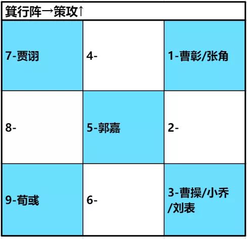 2、郭嘉的看破目标为横排,这个技能其实是加强了贾诩和荀彧这种本身技能就带有对某些特定条件下的部队,伤害越来越高的效果。