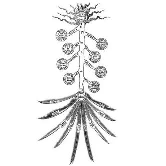 10、第十幕中出现的阴影巨树,观察其内部未被阴影遮蔽透露出的形状,与卡巴拉生命之树顶端向外散发的天火相似。卡巴拉生命树位于伊甸园的中央,借此描述神灵创造世界或着成神的途径,而后来,出现了反转的逆卡巴拉生命树,也就是恶魔之树,一条堕落的途径。