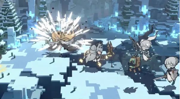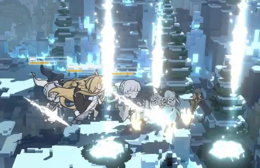 少女降临,光刃突现,锋芒毕露;右边是她的两名随从