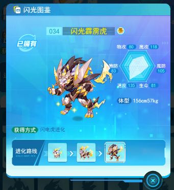 精灵:闪光电击虎→闪光闪电虎→闪光霹雳虎】