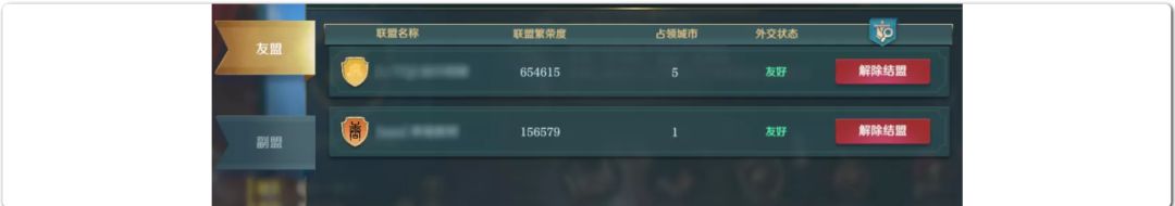 友盟就是友方联盟,也就是俗称的“结盟” ,建立好的友盟关系可以变相增强我方联盟的实力,合作争夺资源点,形成共赢的局面。每个联盟都可以拥有2个友盟,下面给大家详细介绍一下友盟的机制。