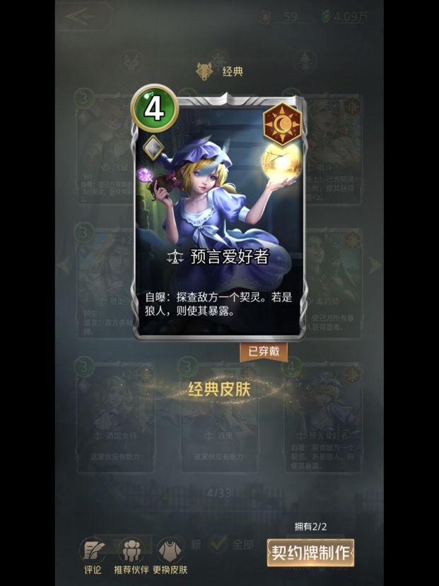 神之假面:遗言:敌方牌库有间谍牌,随机将一张民假或狼假洗入牌库。死亡后不进入墓地